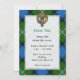 Clan Ferguson crest badge surrounded by a strap and buckle over tartan background. Custom text on both sides.