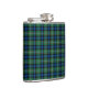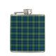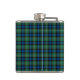 Flask with the Clan Ferguson tartan, dated to 1952. Traditional Scottish plaid pattern in shades of blue and green, with bright red, black and white highlights.