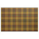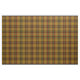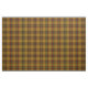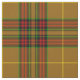 Fabric with the Clan Finnegan tartan, a traditional plaid pattern dated to 1988 in dark gold, black, and red, with bright green and yellow gold accents. Pattern repeats every 4". Special order smaller or larger scale via https://plaidwerx.com/contact.htm