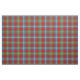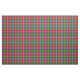 Fabric with the ancient tartan for Clan Foster/Forrester. Traditional Scottish plaid pattern in light blue, coral red, and green with white and yellow highlights. Colours represent dyes used in early textile production. Pattern repeats every 4". Special order larger or smaller scale via https://plaidwerx.com/contact.htm