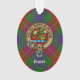 Clan Fraser crest badge surrounded by a strap and buckle over tartan background. Custom text on both sides.
