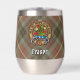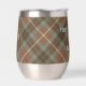 Clan Fraser crest badge surrounded by a strap and buckle over weathered hunting tartan background. Custom text on both sides.