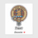 Clan Fraser of Lovat crest badge surrounded by a strap and buckle over tartan background. Custom text.
