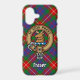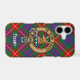 Clan Fraser of Lovat crest badge surrounded by a strap and buckle over tartan background. Custom text.