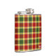 Monogrammed flask with the tartan for Clan Gibbs and Gibson. Bright red, yellow, and green Scottish plaid pattern from 1994, with blue and white accents.