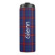 Handsome custom Thermal Tumbler done in the classic blue, green black and red Scottish clan Glenn tartan plaid pattern. Custom white text is ready to personalise. Great gift idea.