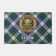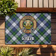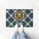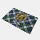 Clan Gordon crest badge surrounded by a strap and buckle over dress tartan background. Custom text.