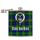 Show your Scottish pride! Clan Gordon crest badge with text on background of clan tartan.