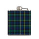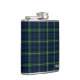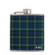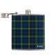 Monogrammed flask with the tartan for Clan Gordon and its septs, including Addison and Cullen. Navy blue and forest green Scottish plaid pattern from 1950, with bright yellow and black accents.