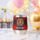 Clan Gregor or MacGregor crest badge surrounded by a strap and buckle over Rob Roy tartan background. Custom text on both sides.