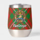Clan Gregor or MacGregor crest badge surrounded by a strap and buckle over tartan background. Custom text on both sides.