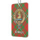 Clan Gregor or MacGregor crest badge surrounded by a strap and buckle over tartan background. Custom text on both sides.