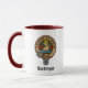 Clan Gregor or MacGregor crest badge surrounded by a strap and buckle over tartan background. Custom text on both sides.