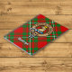 Clan Gregor or MacGregor crest badge surrounded by a strap and buckle over tartan background. Custom text.