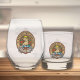 Clan Gregor or MacGregor crest badge surrounded by a strap and buckle over tartan background. Custom text on both sides.