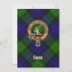 Clan Gunn crest badge surrounded by a strap and buckle over tartan background. Custom text on both sides.