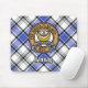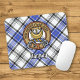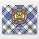 Clan Hannay crest badge surrounded by a strap and buckle over tartan background. Custom text.