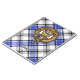 Clan Hannay crest badge surrounded by a strap and buckle over tartan background. Custom text.