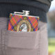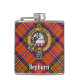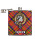 Clan Hepburn crest badge surrounded by a strap and buckle over tartan. Custom text.