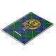 Clan Johnston crest badge surrounded by a strap and buckle over tartan background. Custom text.