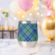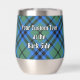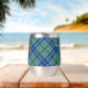 Clan Keith crest badge surrounded by a strap and buckle over tartan background. Custom text on both sides.