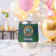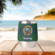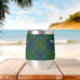 Clan Kennedy crest badge surrounded by a strap and buckle over tartan background. Custom text on both sides.