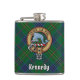 Clan Kennedy crest badge surrounded by a strap and buckle over tartan. Custom text.