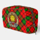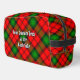 Clan Kerr crest badge surrounded by a strap and buckle over tartan background. Custom text on both sides.