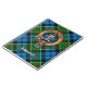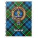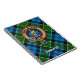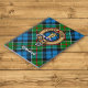 Clan Kirkpatrick crest badge surrounded by a strap and buckle over tartan background. Custom text.