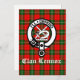 Stylish flat greeting card features Scottish Clan Lennox crest badge and customisable text on tartan background