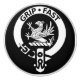 White Clan Leslie crest badge design on black background.