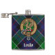 Clan Leslie Crest over Hunting Tartan Hip Flask