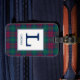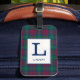 Luggage tag with the Clan Lindsay tartan, dated to 1842. Traditional Scottish plaid pattern in cranberry red and green, with dark royal blue highlights. Personalise with your initial and surname on a light coloured plate for easy legibility.