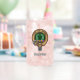 Clan MacArthur crest badge surrounded by a strap and buckle over tartan background. Custom text on both sides.