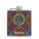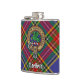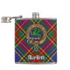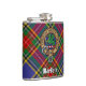Clan MacBeth crest badge surrounded by a strap and buckle over tartan background. Custom text.
