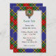 Clan MacBeth crest badge surrounded by a strap and buckle over tartan background. Custom text on both sides.