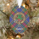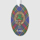 Clan MacBeth crest badge surrounded by a strap and buckle over tartan background. Custom text on both sides.