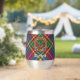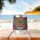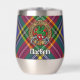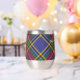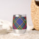 Clan MacBeth crest badge surrounded by a strap and buckle over tartan background. Custom text on both sides.