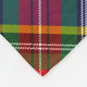 Clan MacBeth crest badge surrounded by a strap and buckle over tartan background. Custom text.