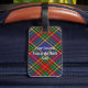 Clan MacBeth crest badge surrounded by a strap and buckle over tartan background. Custom text on both sides.