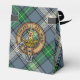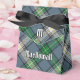 Clan MacDowall crest badge surrounded by a strap and buckle over tartan. Custom monogram. Custom text.
