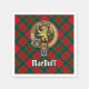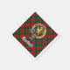 Clan MacDuff crest badge surrounded by a strap and buckle over tartan background. Custom text.