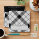 Clan MacFarlane traditional black and white tartan with modern colours. Seamless pattern. Custom text.
