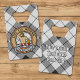 Clan MacFarlane crest badge surrounded by a strap and buckle over black and white tartan background. Custom text on both sides.