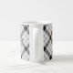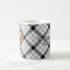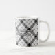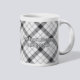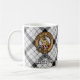 Clan MacFarlane Crest over Black and White Tartan Coffee Mug