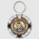 Clan MacFarlane Crest over Black and White Tartan Key Ring