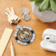Clan MacFarlane crest badge surrounded by a strap and buckle over black and white tartan background. Custom text on both sides.