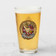 Clan MacFarlane crest badge surrounded by a strap and buckle over dress tartan background. Custom text on both sides.