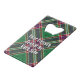 Clan MacFarlane crest badge surrounded by a strap and buckle over modern hunting tartan background. Custom text on both sides.