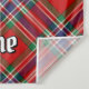 Clan MacFarlane crest badge surrounded by a strap and buckle over tartan background. Custom text.